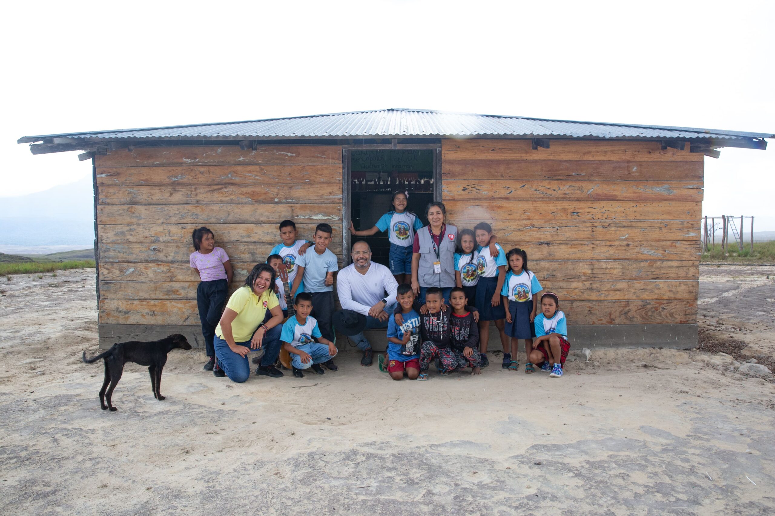 Construcción de una escuela para la comunidad indígena pemón de Santa Clara del Oso, para dar acceso a la educación y preservar su idioma y culturas ancestrales.
